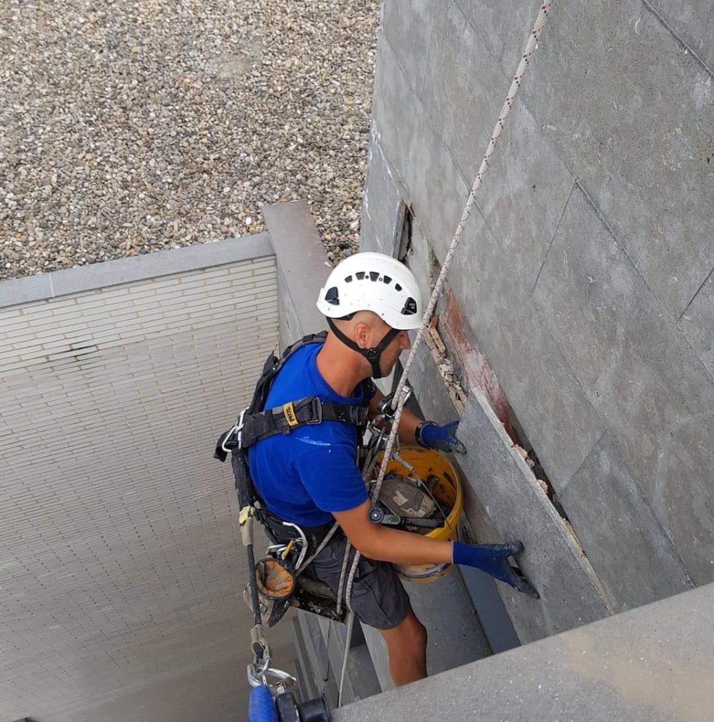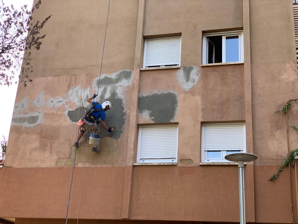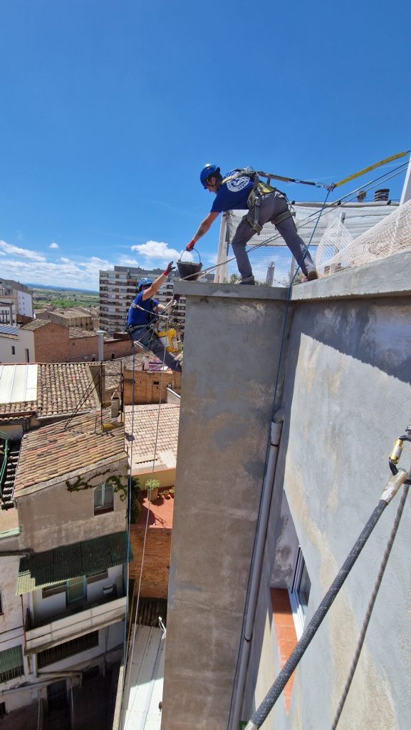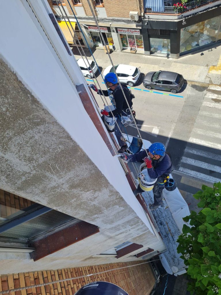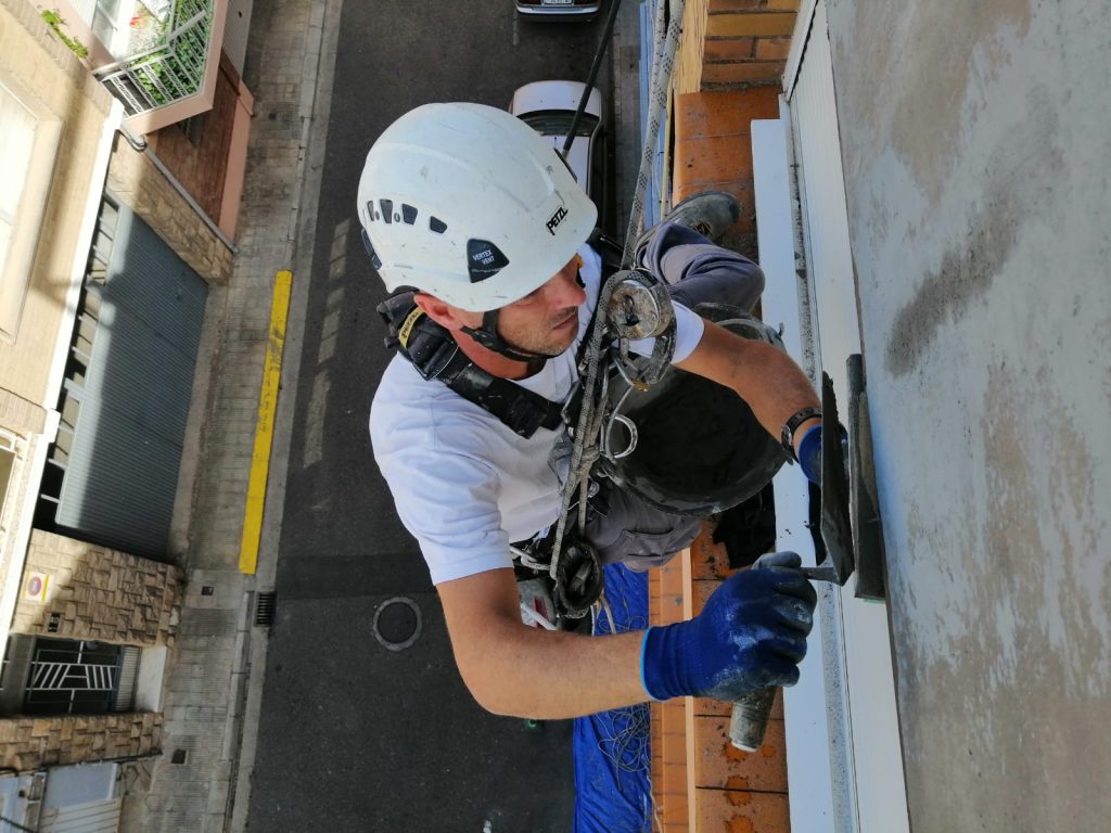 Rehabilitación estructural y aplicación de pintura profesional. Precisión garantizada en superficies verticales.